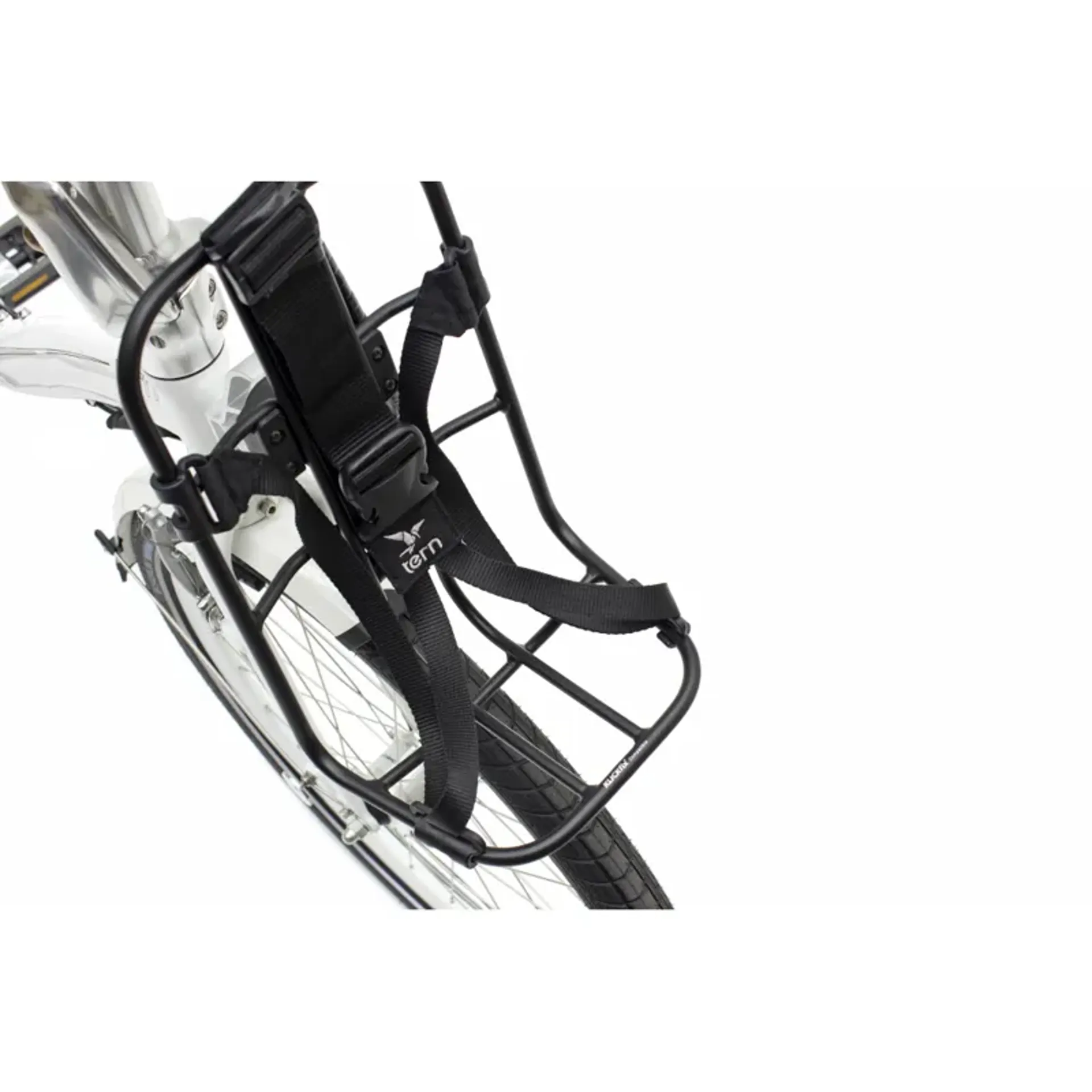 The kanga rack is a versatile “racksket” (rack-basket hybrid) that magically turns your favorite bag into a bicycle bag. Because it’s mounted to the frame with the tern luggage truss it doesn’t affect handling. Thanks to the open design and adjustable strap system, you can secure big and unwieldy bags that would be too big for a basket.